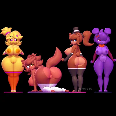 bonfie (cryptiacurves), bonnie (fnaf), chica (fnaf) (five nights at freddy's, fredina's nightclub) created by nonotoys