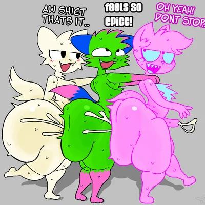 kevin (nyanwolf), silly cat (mauzymice), soft fuzzy man (aimkid) (aimkid (copyright), boy kisser (meme)) created by furu flami