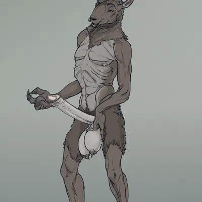 Muscular werewolf crouching under moon presenting thick red veiny peni