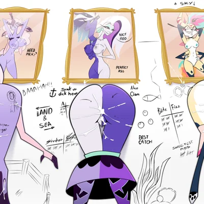 belphegor (helluva boss), leviathan (helluva boss), queen bee-lzebub (helluva boss) (hellaverse, helluva boss) created by deadinside97