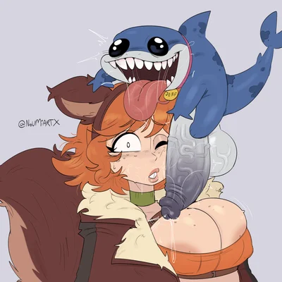 jeff the land shark, squirrel girl (marvel) (marvel, marvel rivals) created by noumi