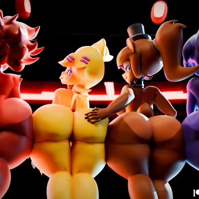 bonfie (cryptiacurves), bonnie (fnaf), chica (fnaf) (five nights at freddy's, fredina's nightclub) created by cryowolf9