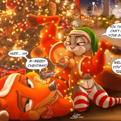 judy hopps, nick wilde, pawbert lynxley (christmas, disney) created by link6432