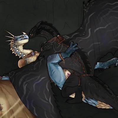 stormfly, toothless (dreamworks, european mythology) created by yiffy1234