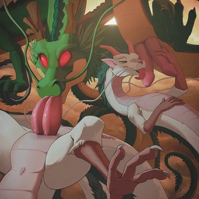 haku (spirited away), shenron (dragon ball, ghibli) created by drakawa