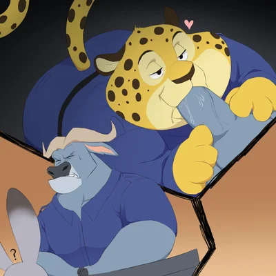 benjamin clawhauser, chief bogo, judy hopps (disney, zootopia) created by hypnokoo
