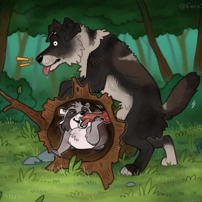 rocket raccoon, wile e. coyote, ziggy (wolfbard) (acme, acme products) created by catsnbriefs