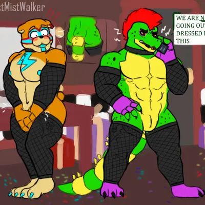 glamrock freddy, montgomery gator (five nights at freddy's, five nights at freddy's: security breach) created by the mist walker