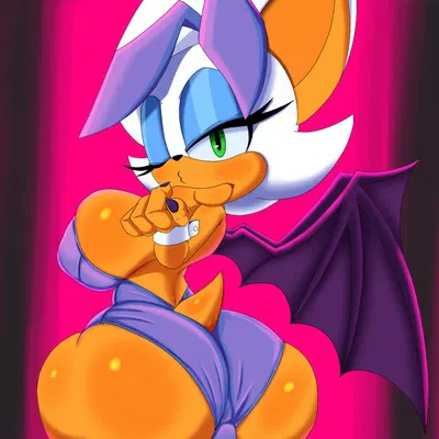Rouge the Bat Winking Topless with Plump Pussy and Fluffed Nipples
