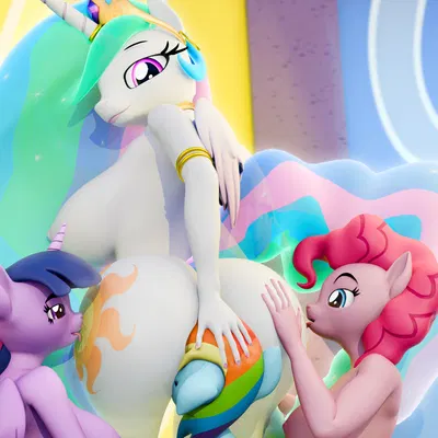 pinkie pie (mlp), princess celestia (mlp), rainbow dash (mlp) (friendship is magic, hasbro) created by royalsimp