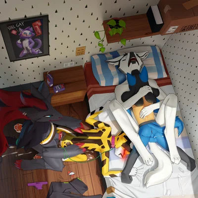 andromorph · anthro · bed · bodily fluids