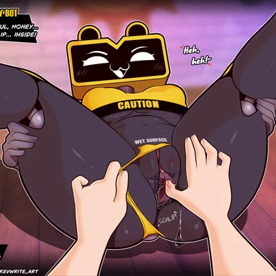 customer (freddy fuckbear's cathouse), wet floor bot (fnaf) (five nights at freddy's, five nights at freddy's: security breach) created by kevwrite