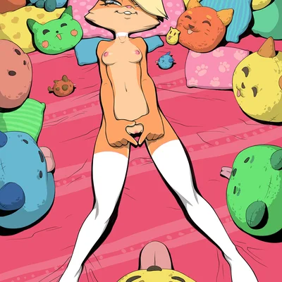 Anthro Blonde Doggy with Huge Breasts and Thick Thighs on Bed