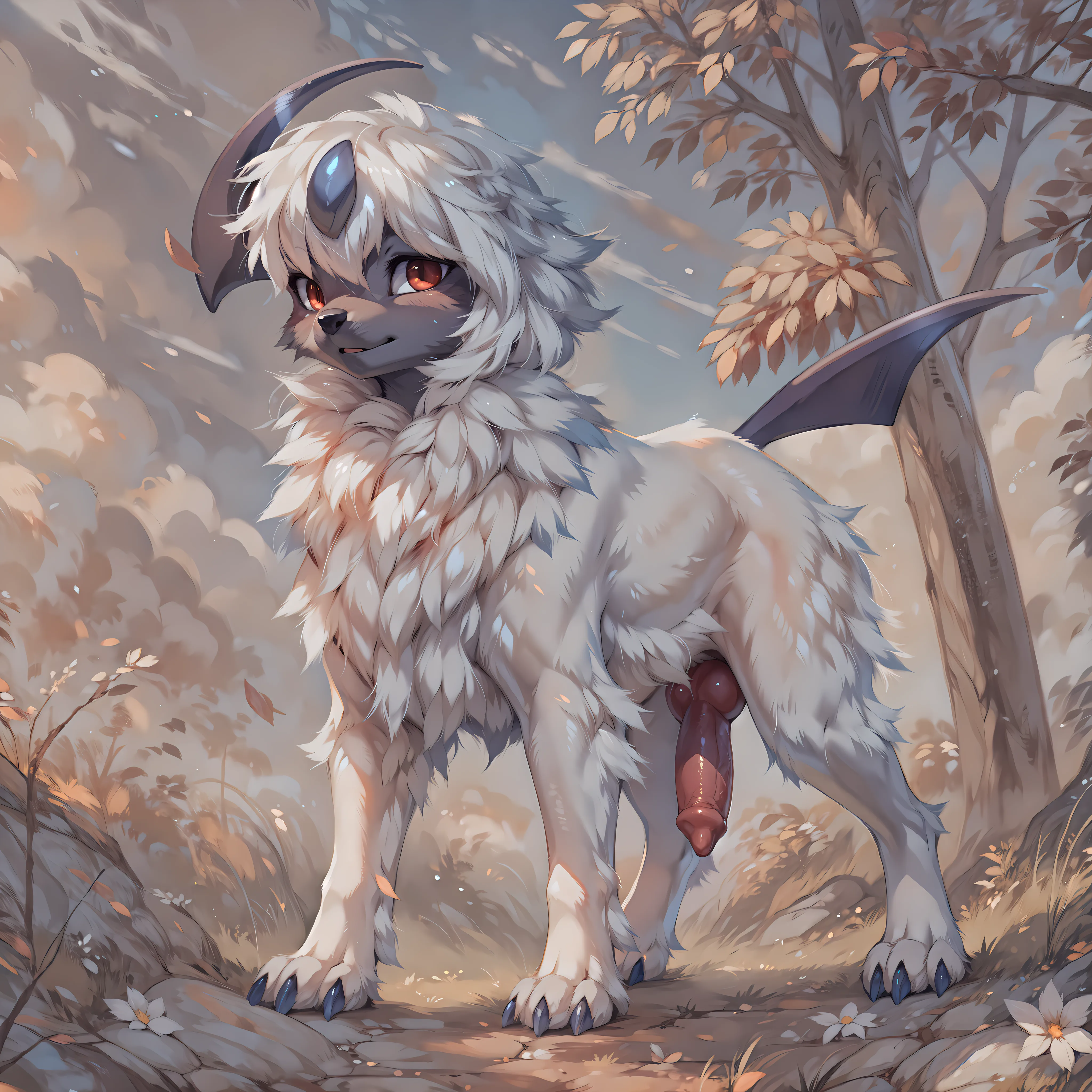 Absol Dog Knot On Cloud With Red Eyes And Fluffy White Fur | Yiff Party