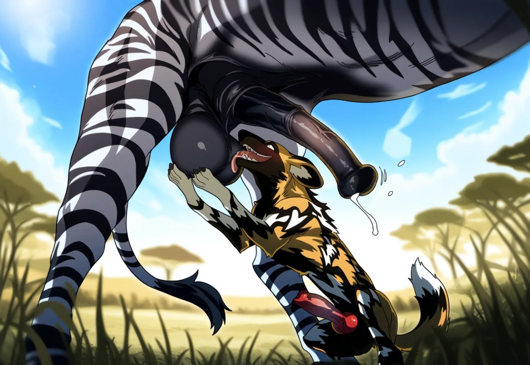 African Wild Dog And Zebra Mate On Savanna Grass Tongues Out | Yiff Party