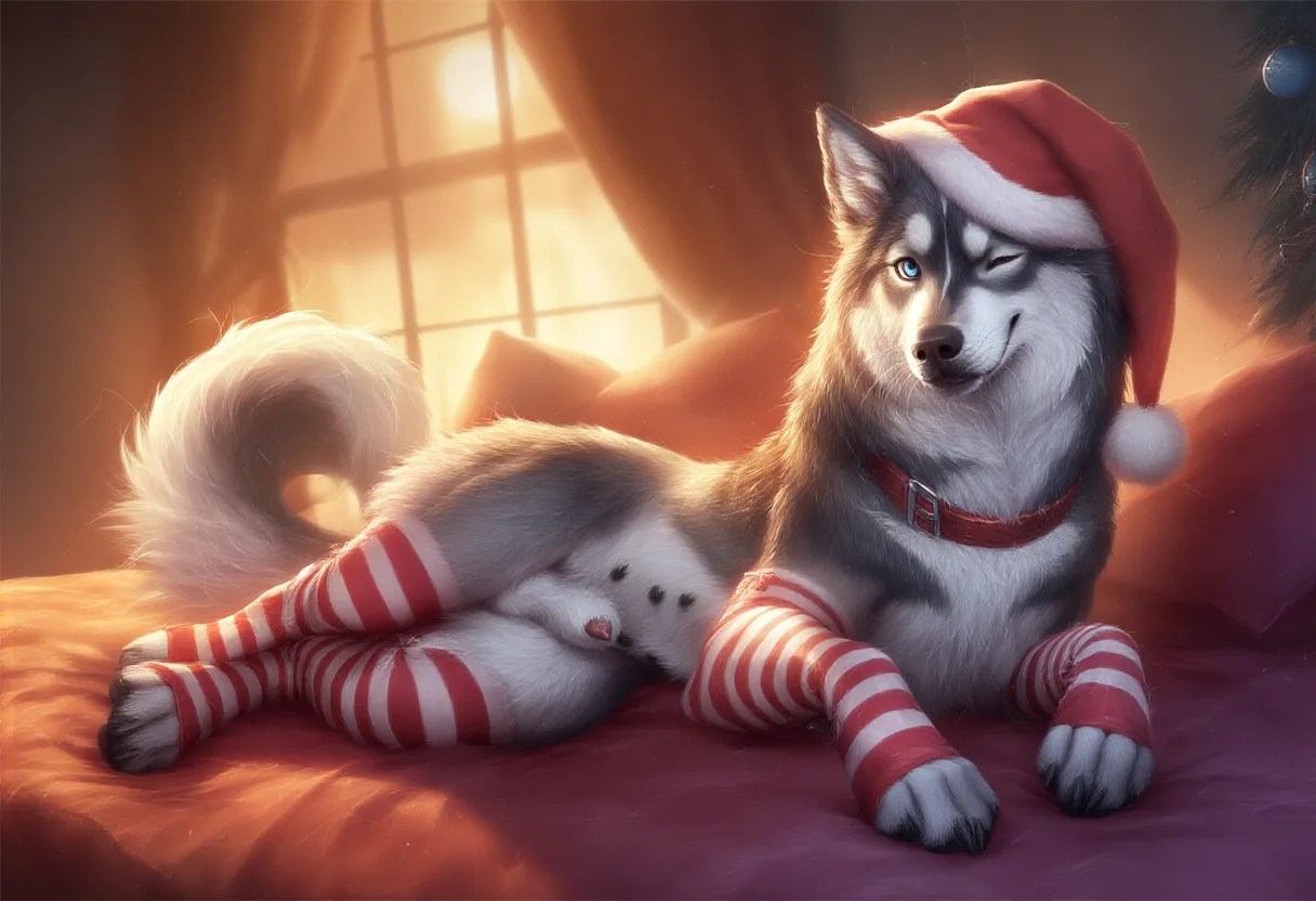 Alaskan Malamute Canid Christmas Solo Fur Genitalia Wink | Yiff Party