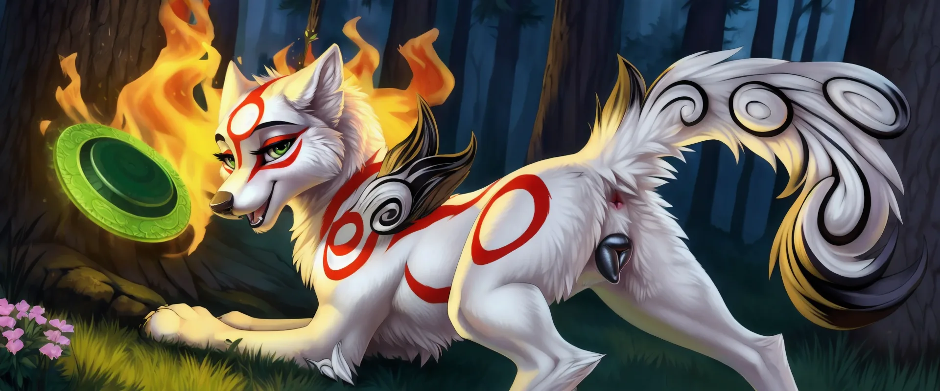 Amaterasu Bares Her Pink Pussy And Raised Tail In A Seductive Forest P | Yiff Party