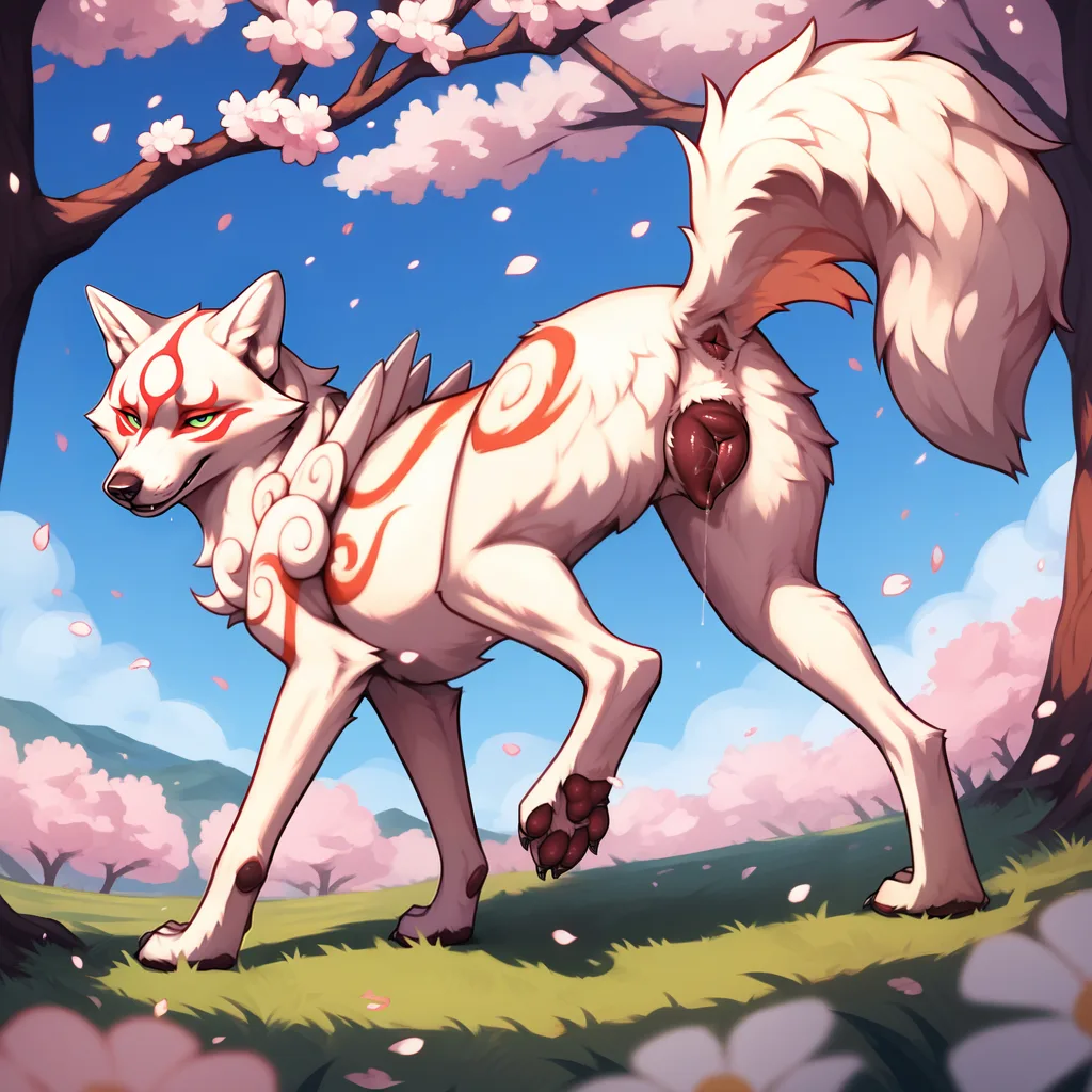 Amaterasu'S White Fur Glistens With Dewy Pussy Juice | Yiff Party