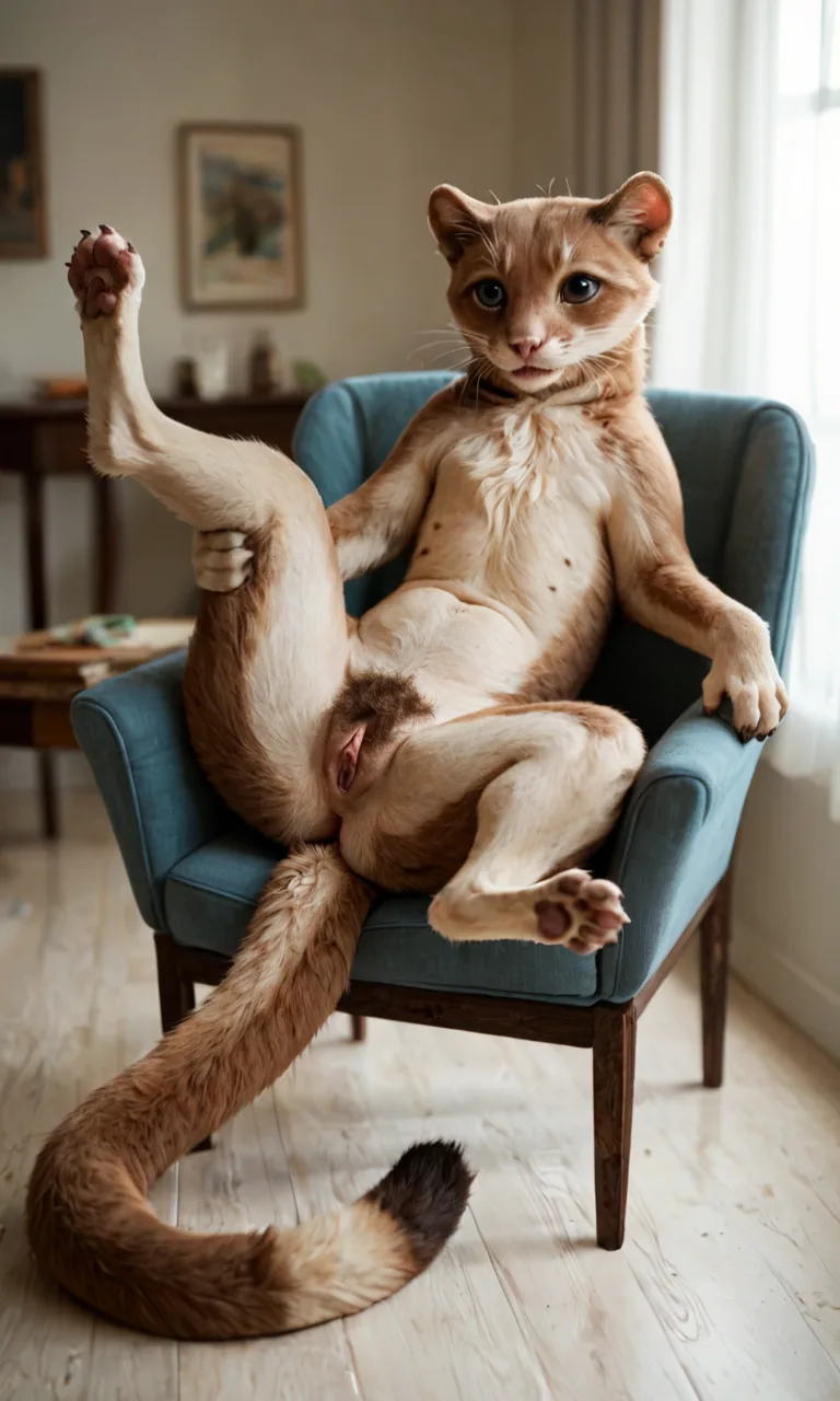 Anthro Feline Female Spreads Legs On Chair | Yiff Party