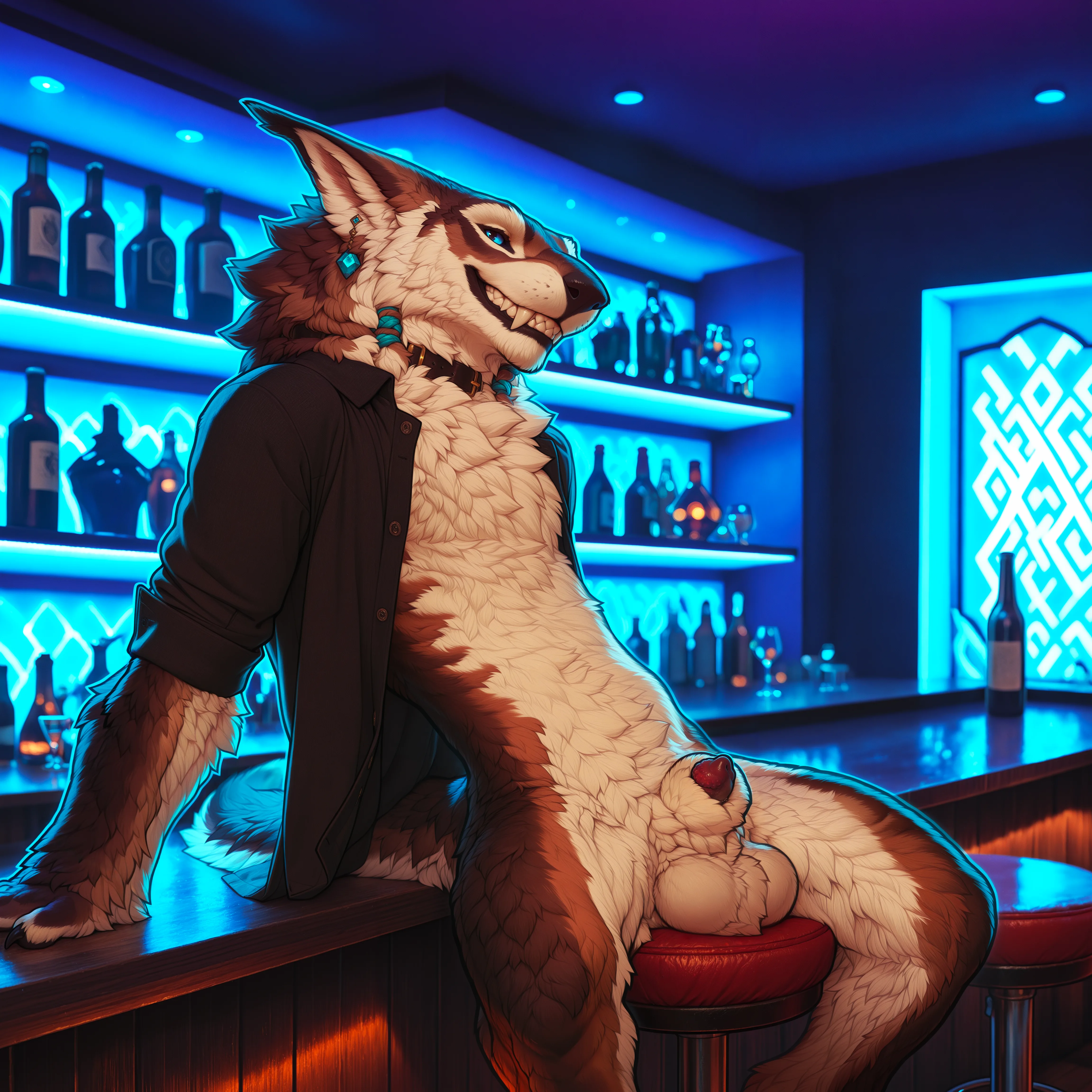 Anthro Leopard With Pierced Sheath Flaunts Cock At Bar. | Yiff Party