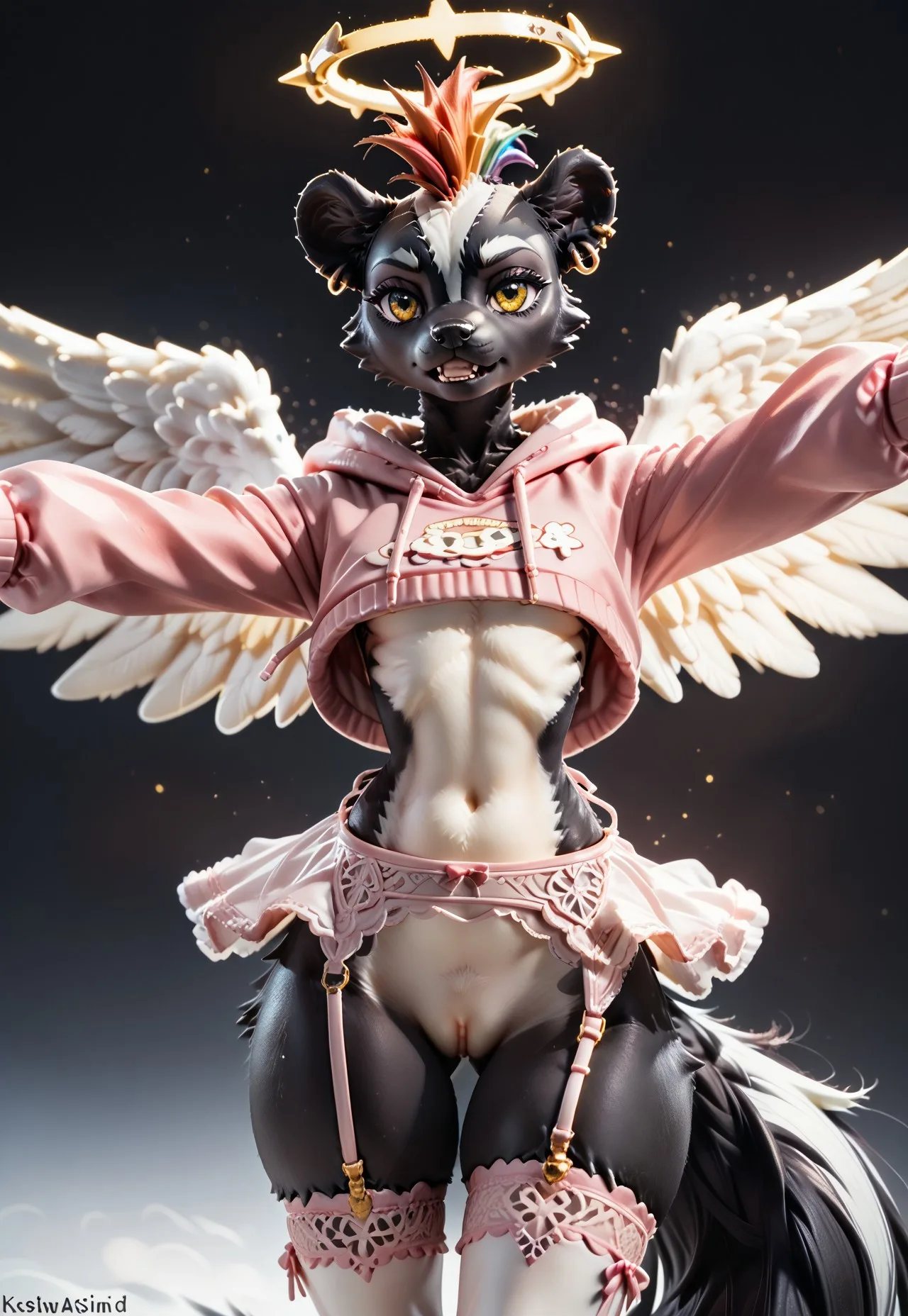 Anthro Skunk Mephitid Angel Crop Top Thigh Highs Pussy Smile Wide Hips | Yiff Party