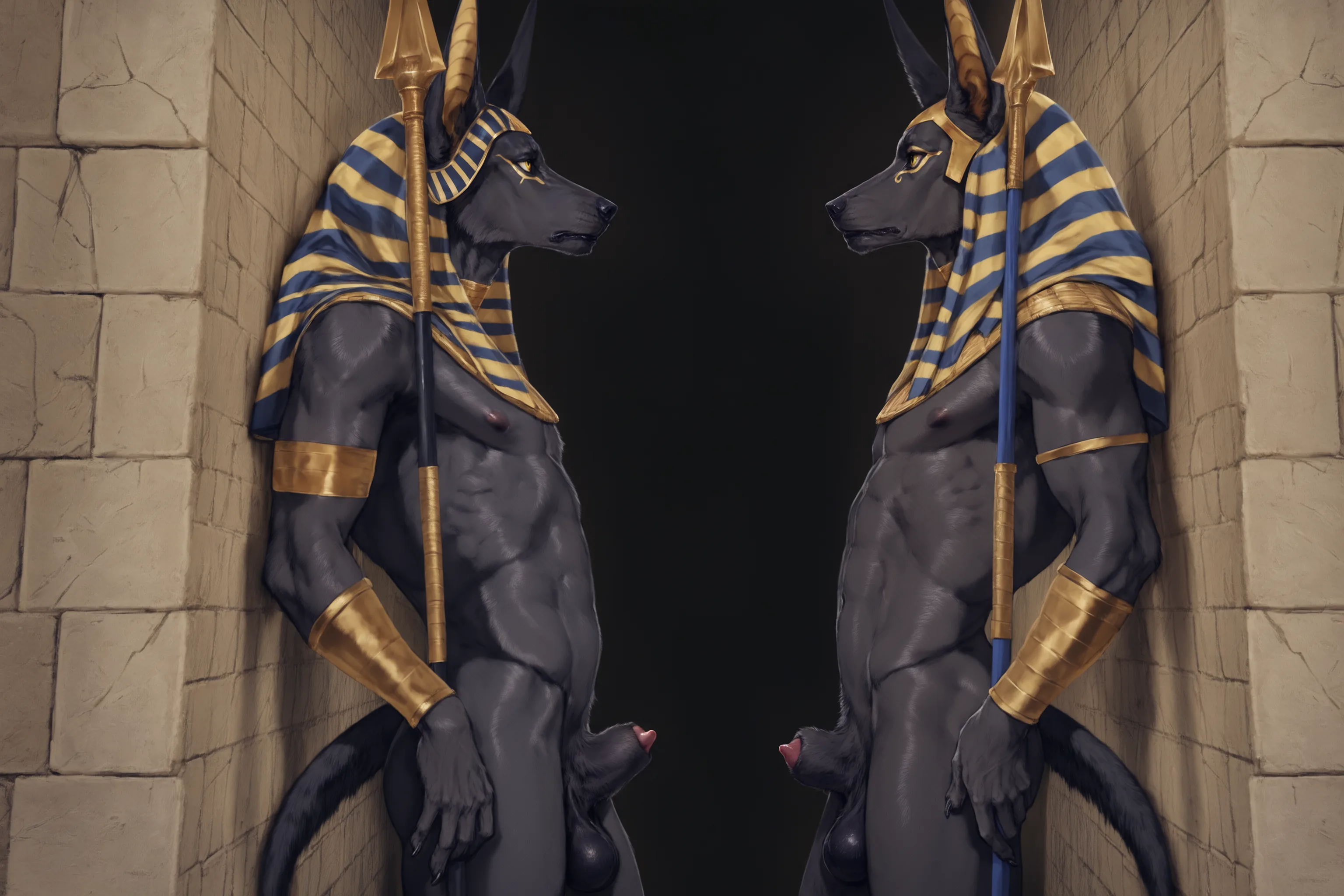 Anubian Jackal And Canid Anthros In Egyptian Armor Engage In Muscular | Yiff Party