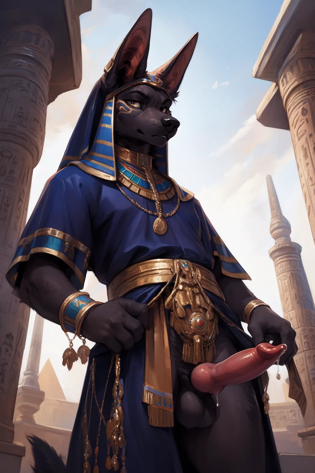Anubis Jackal God Erect Gold Jeweled Cock Dripping Precum | Yiff Party
