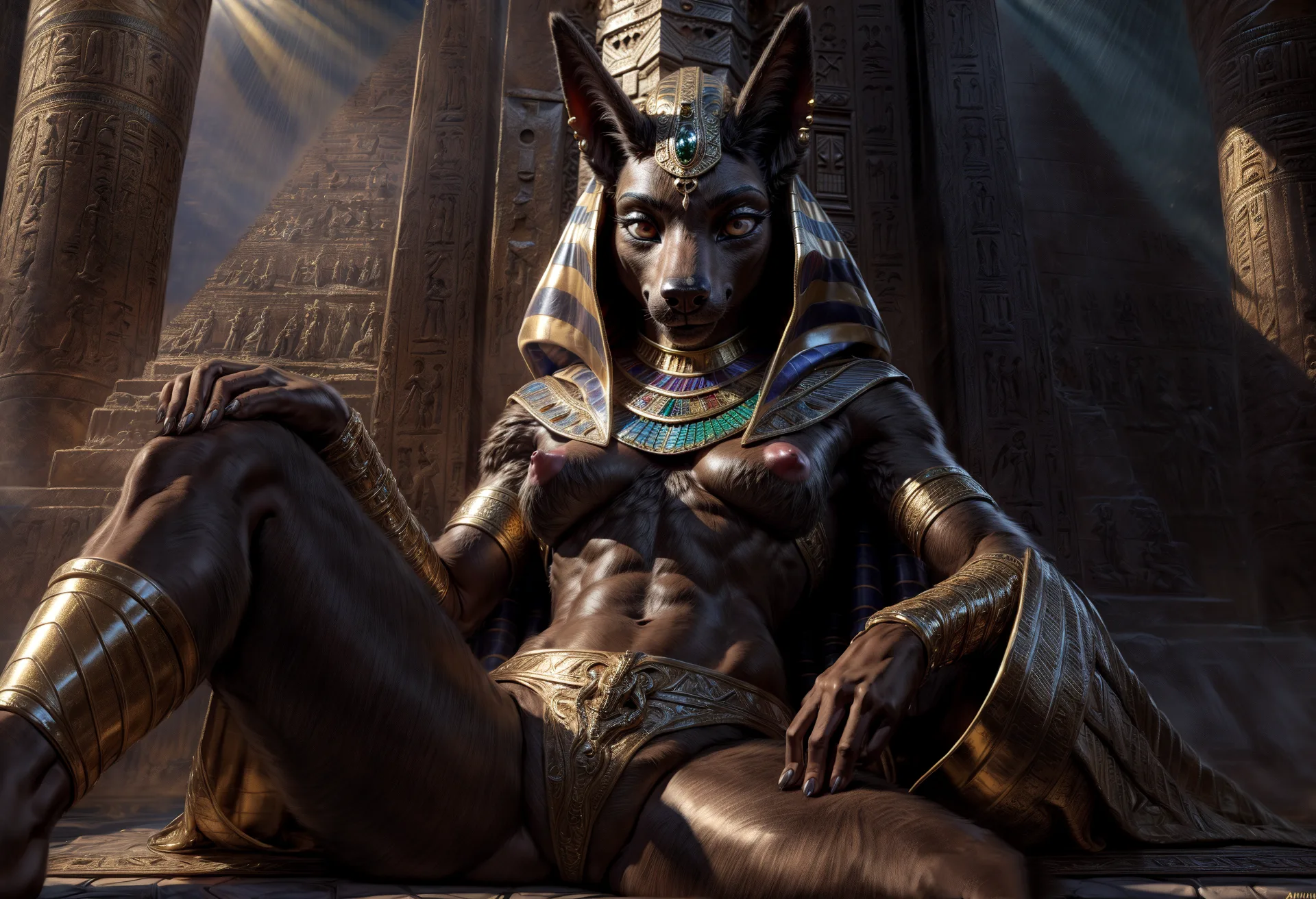 Anubis Queen On Throne Canid Goddess Visible Nipples | Yiff Party