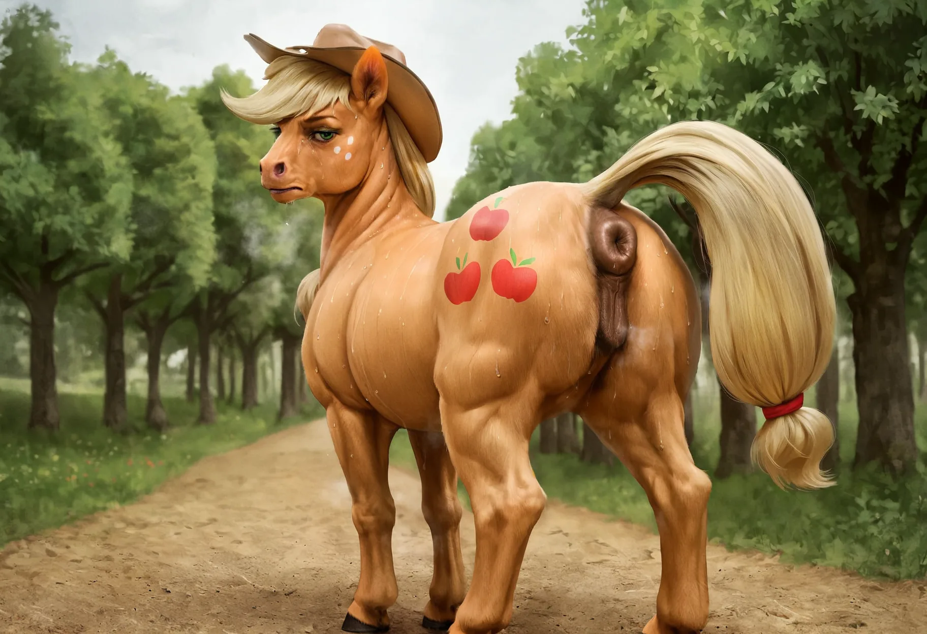 Applejack Sexy Equine Solo Rear View With Anatomically Correct Genital | Yiff Party