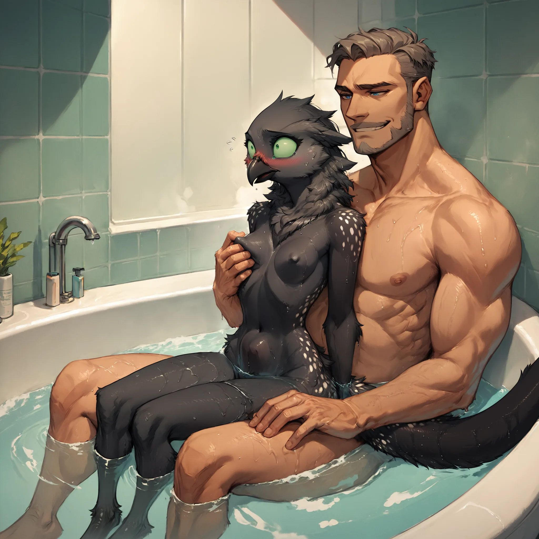 Aqua Avian Anthro Penetrated By Human Male In Tub | Yiff Party
