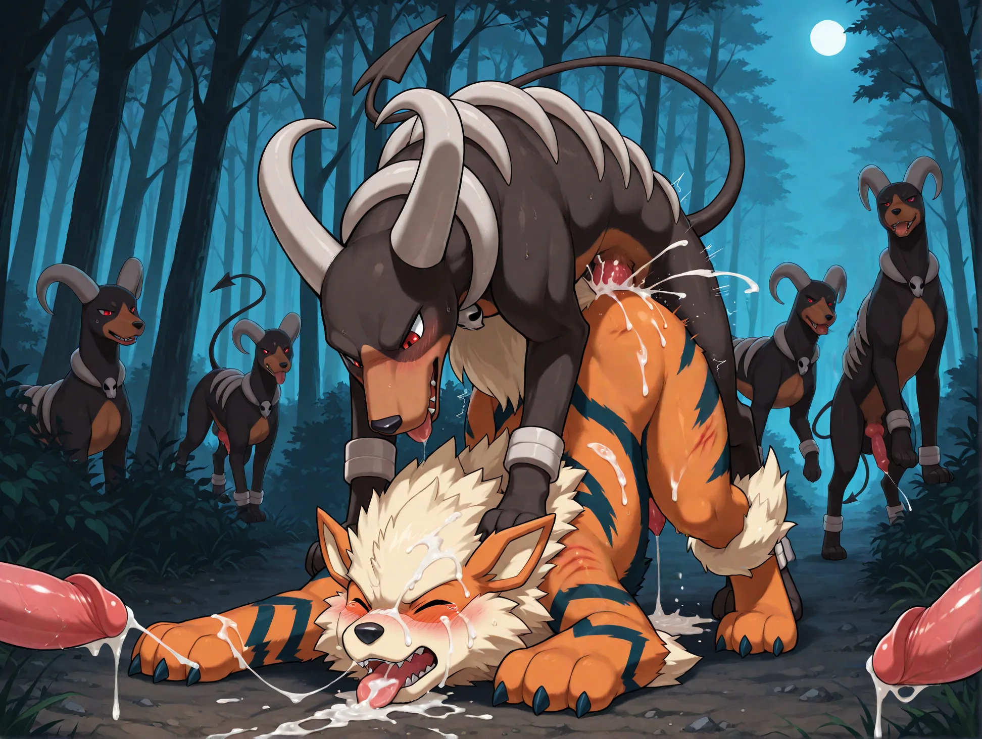 Arcanine And Houndoom Anal Penetration In Forest At Night | Yiff Party