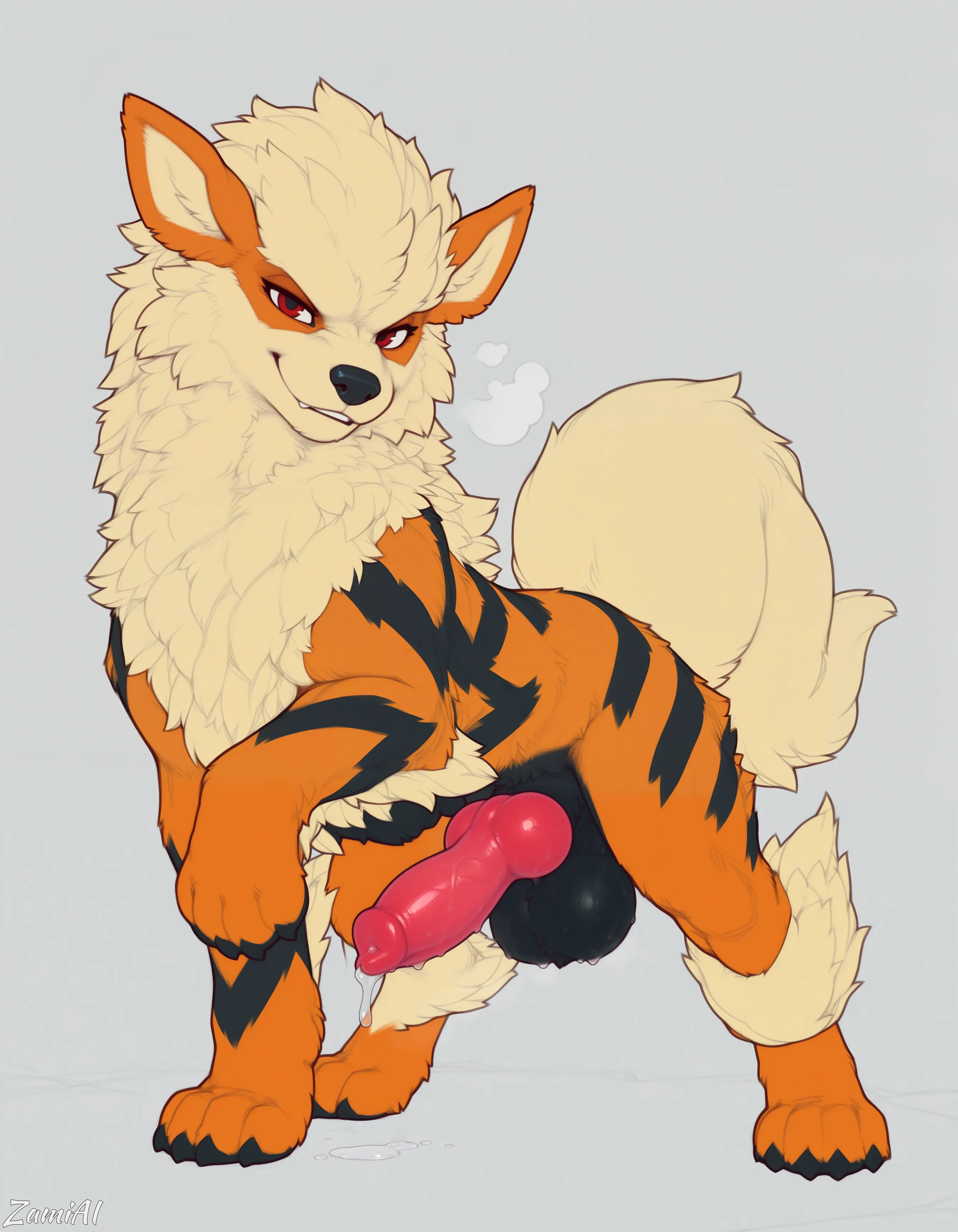Arcanine Canine Standing Solo Smirk Sweat Dripping Big Genitalia | Yiff Party