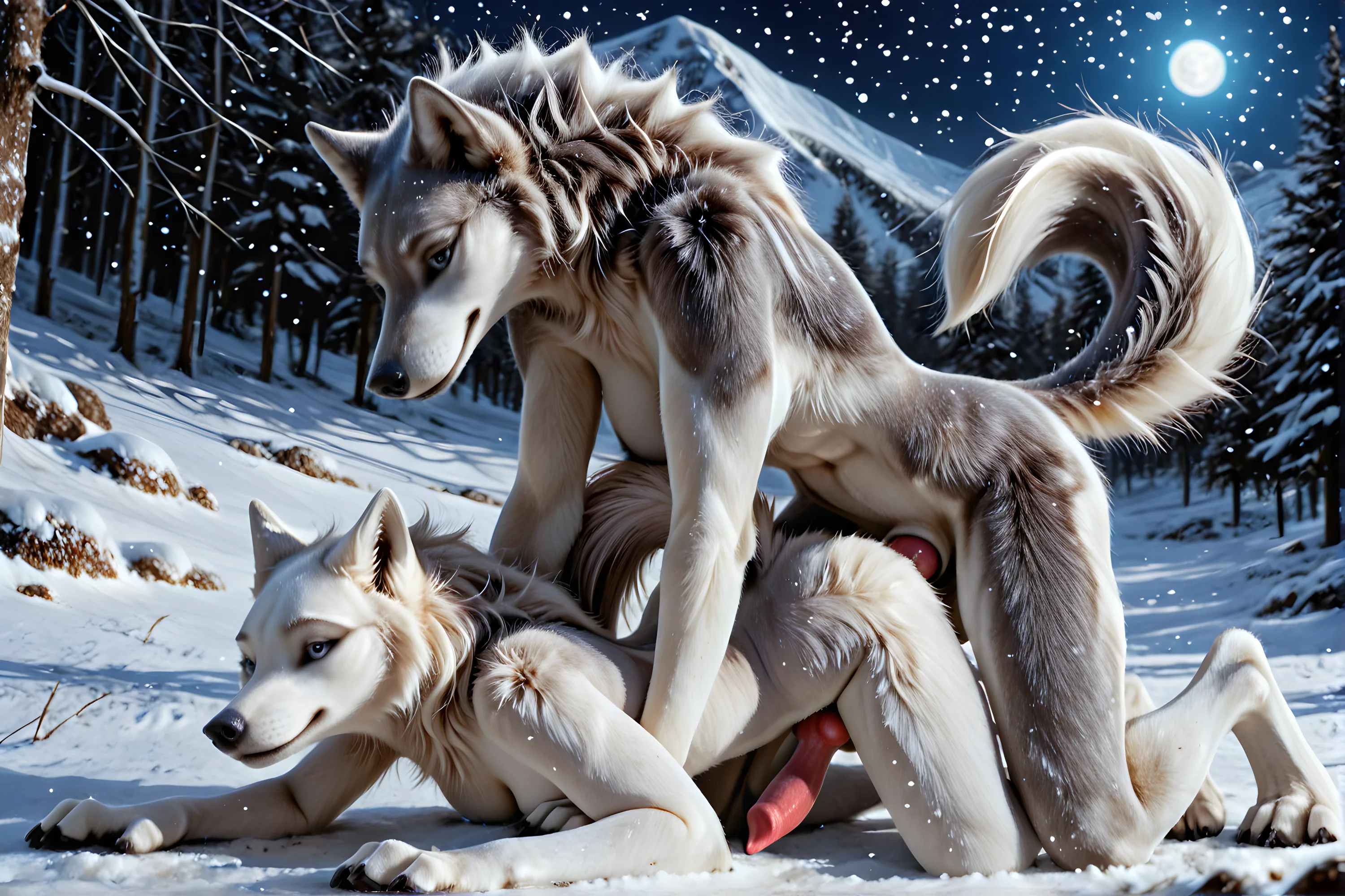 Arctic Wolf Gynomorphs Penetrating Each Other Doggystyle In Snowy Fore | Yiff Party