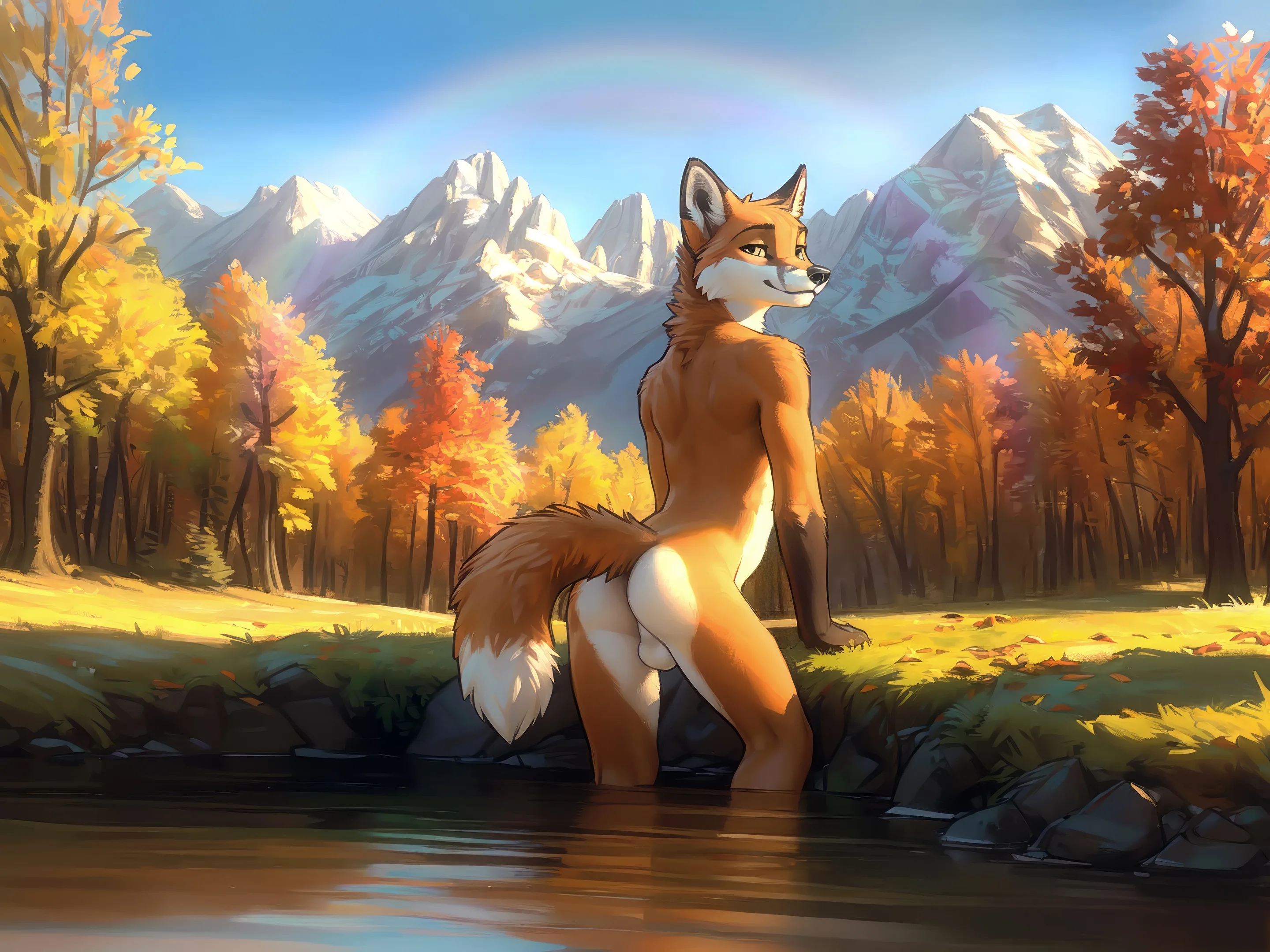 Autumn Fox Hiker Nude By River Mountains | Yiff Party
