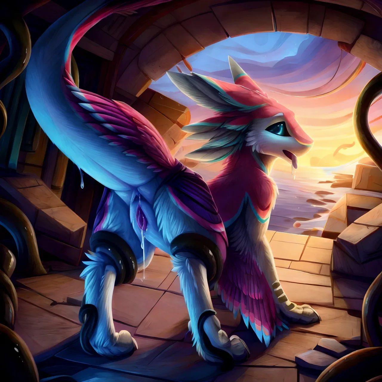 Avali Avian On All Fours Presenting Wet Cloaca And Dripping Precum | Yiff Party