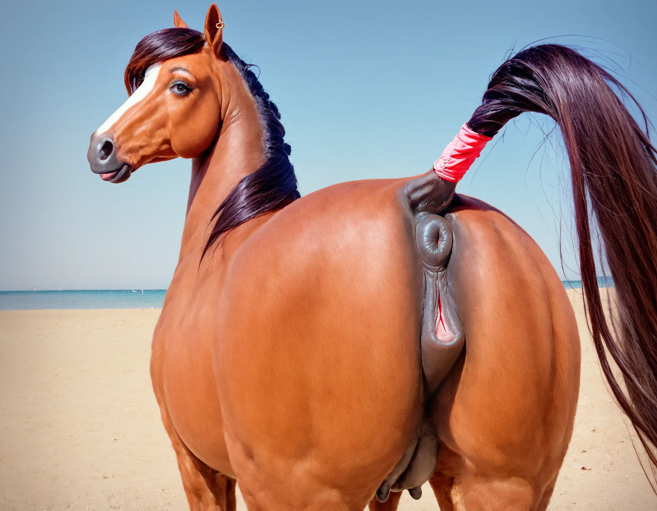 Beachside Equine Beauty Presents Her Glistening Black Pussy And Anus O | Yiff Party