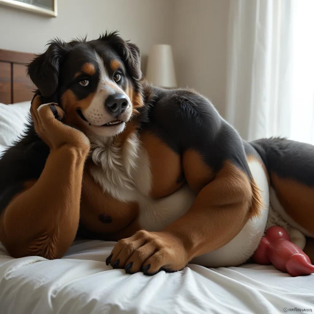 Bernese Mountain Dog Anthro Male Nude On Bed Smiling With Erect Knotte | Yiff Party