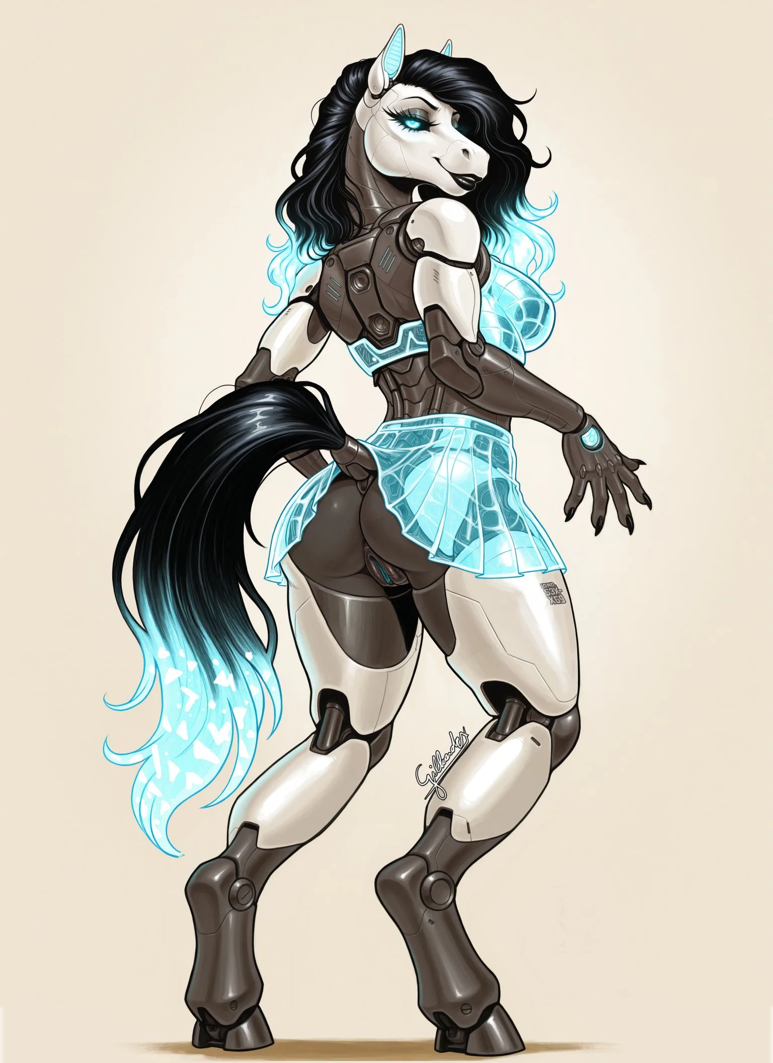 Blackhaired Blueeyed Robotic Horse Monika Showing Pussy And Translucen | Yiff Party