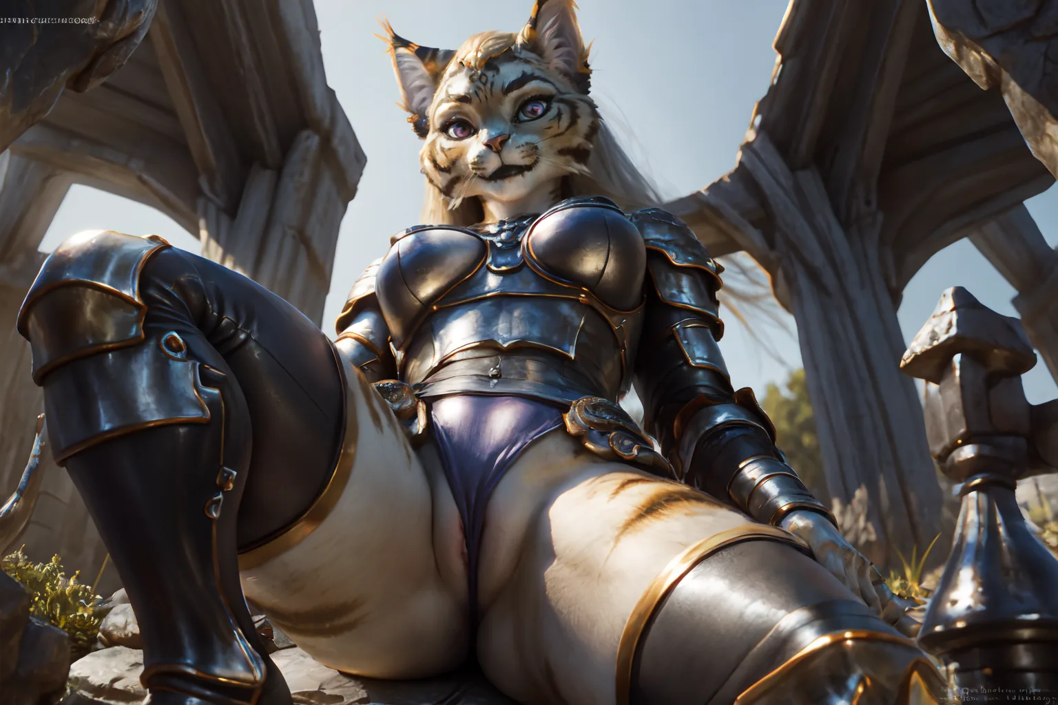 Blonde Catgirl In Armor Ready To Sit On Your Face | Yiff Party