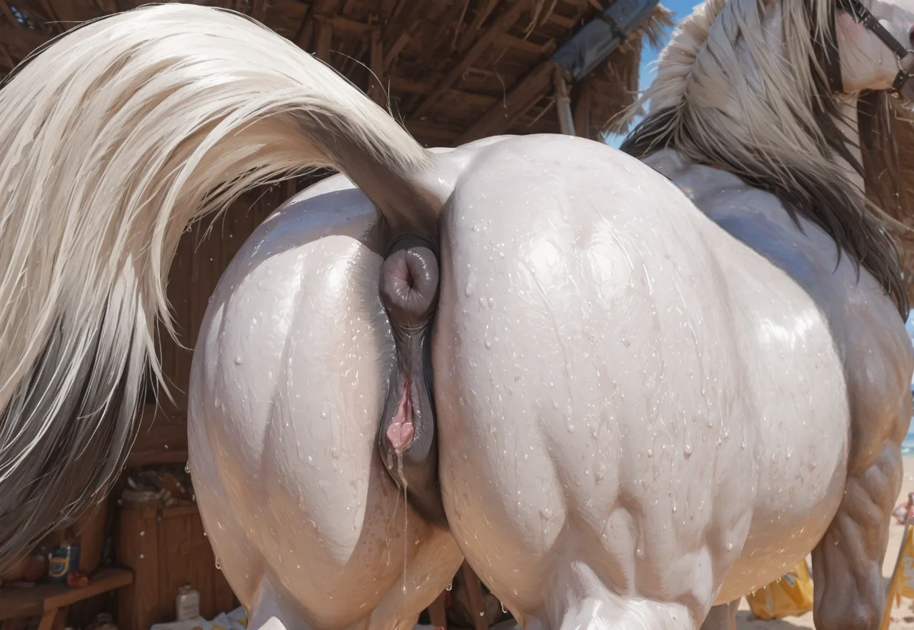 Blonde Mare Stands In Barn With Tail Raised Revealing Puffy Equine Pus | Yiff Party