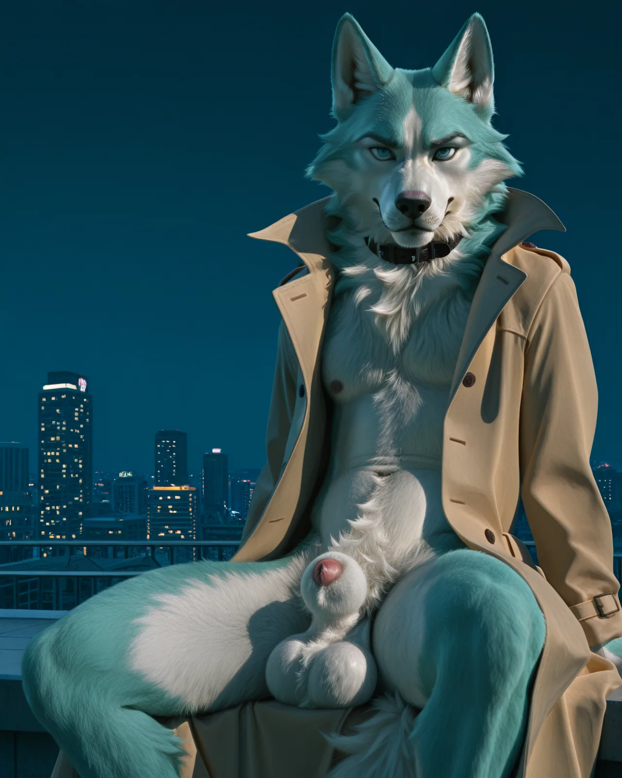 Blue Wolf Anthro With Big Ball Fluffy Trenchcoat Canine Penis | Yiff Party