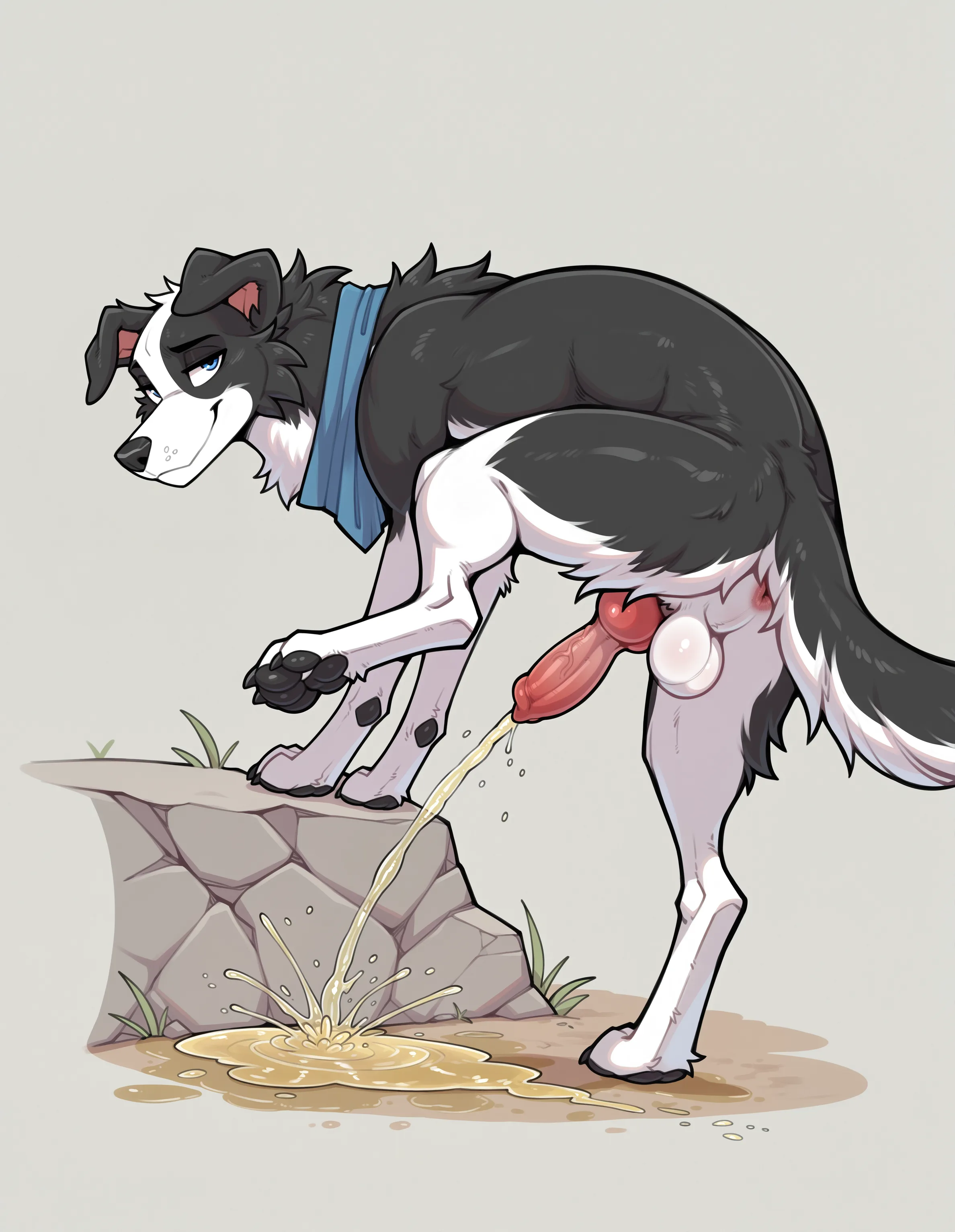 Border Collie Dog Peeing With Erect Penis And Knot Exposed Outdoors | Yiff Party