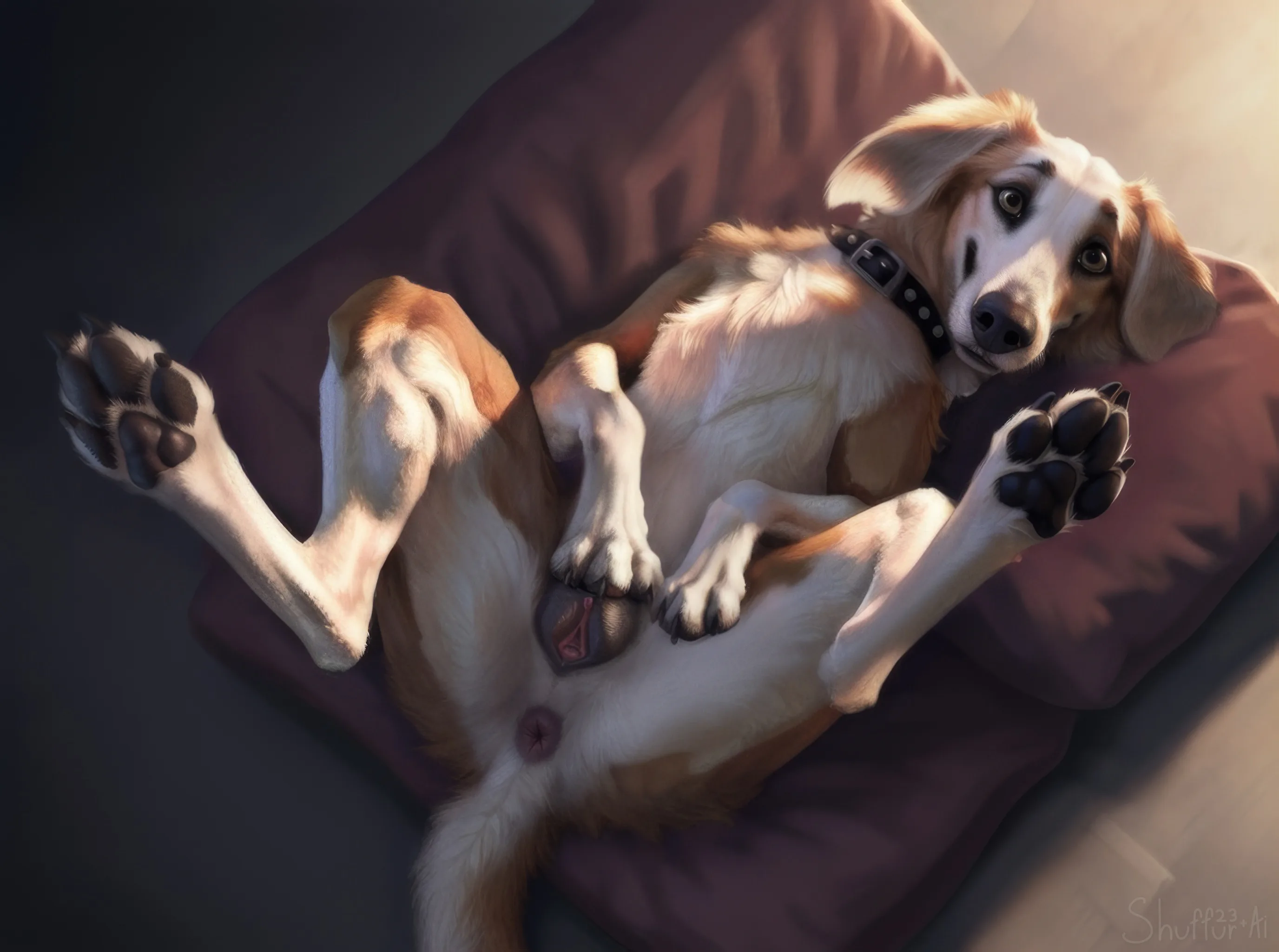 Borzoi Beauty Sprawls Nude On Bed, Presenting Damp Pussy And Pink Anus | Yiff Party