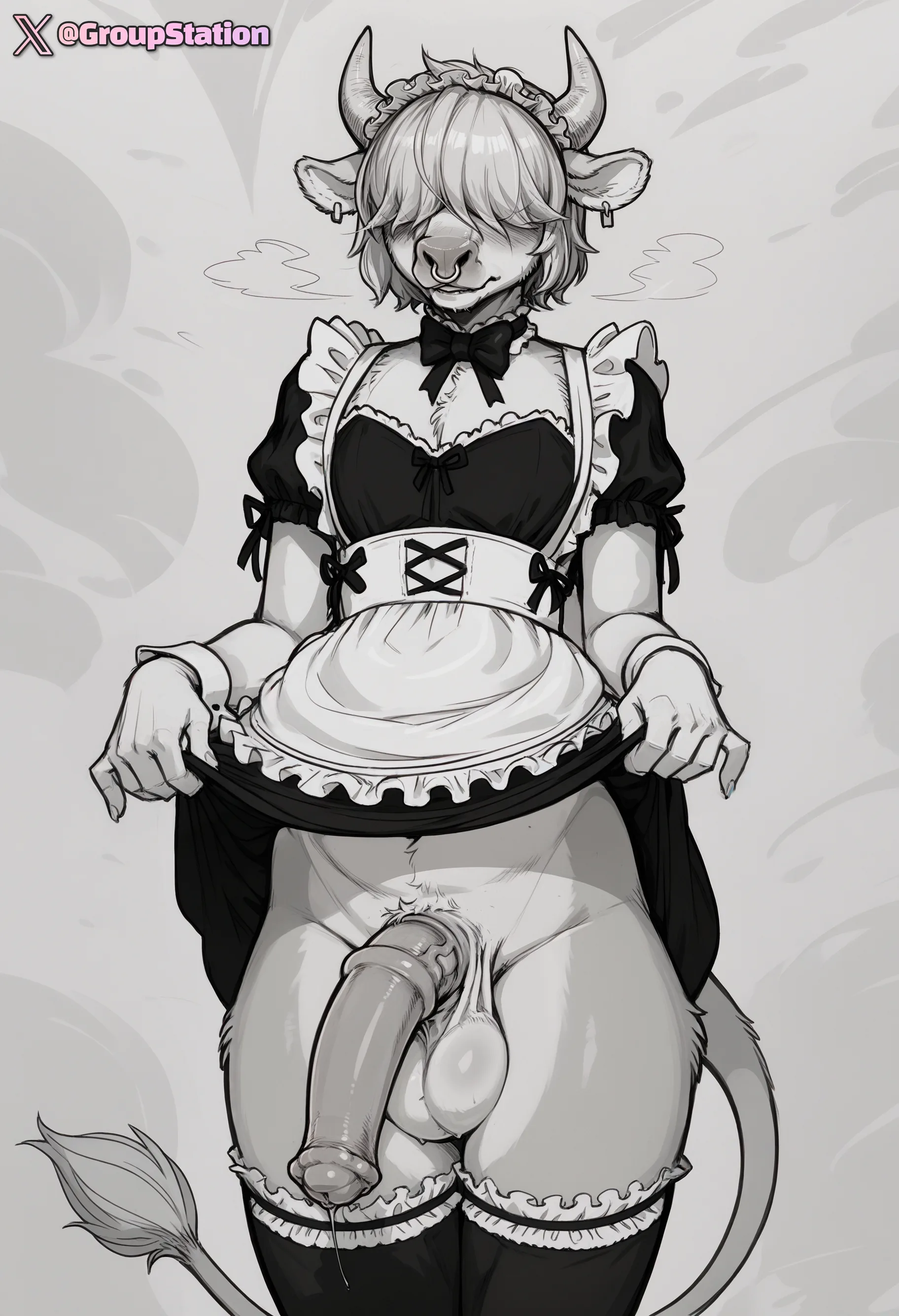 Bovine Femboy Maid Presenting Genitals And Dripping Precum Seductively | Yiff Party