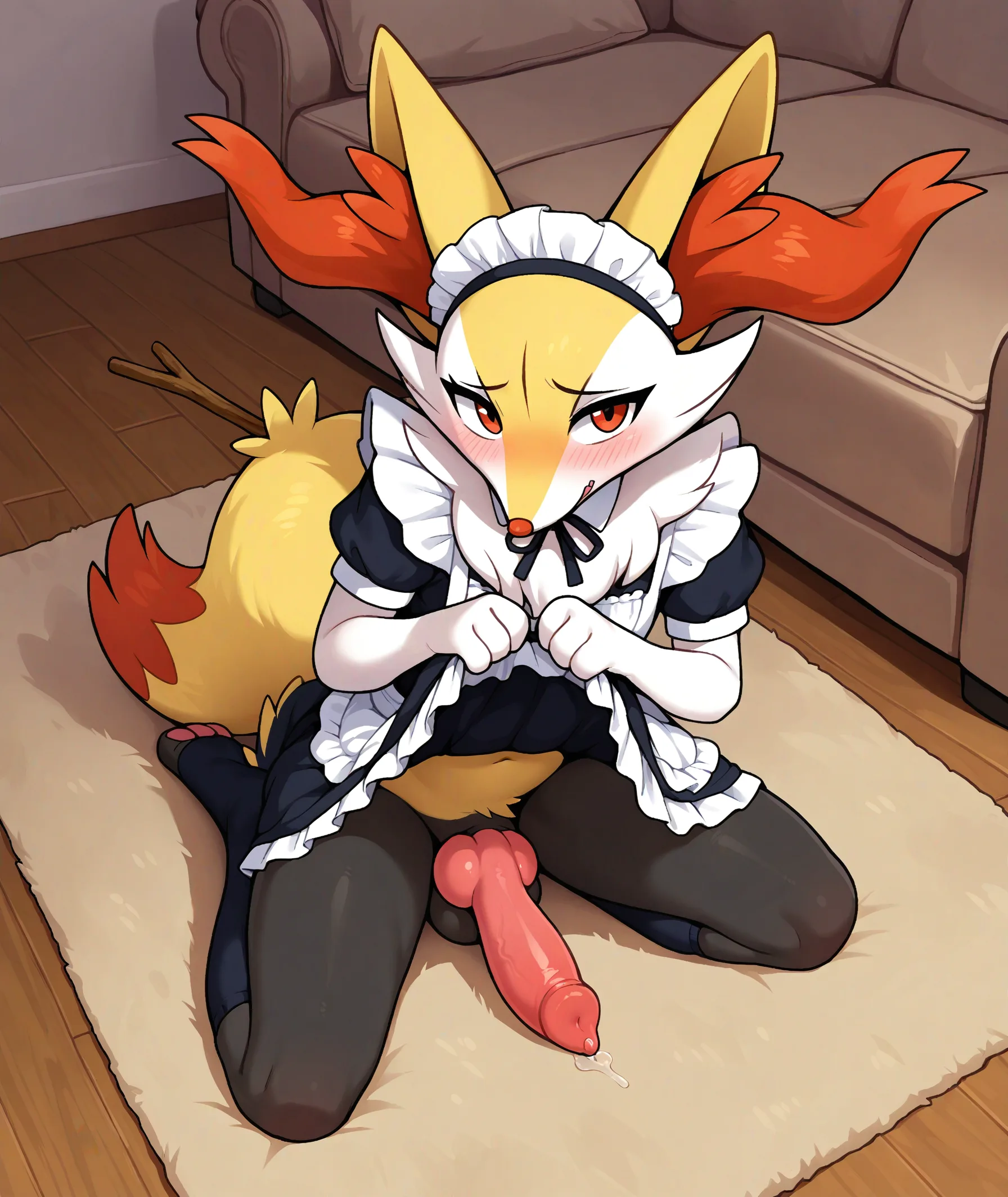 Braixen Maid Uniform Solo Kneeling With Erect Canine Penis And Fluffy | Yiff Party