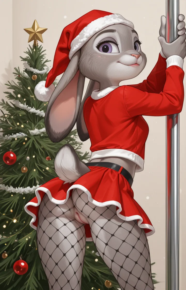 Bunny Judy Hopps Strips On Pole Showing Crotchless Fishnet Bottom | Yiff Party