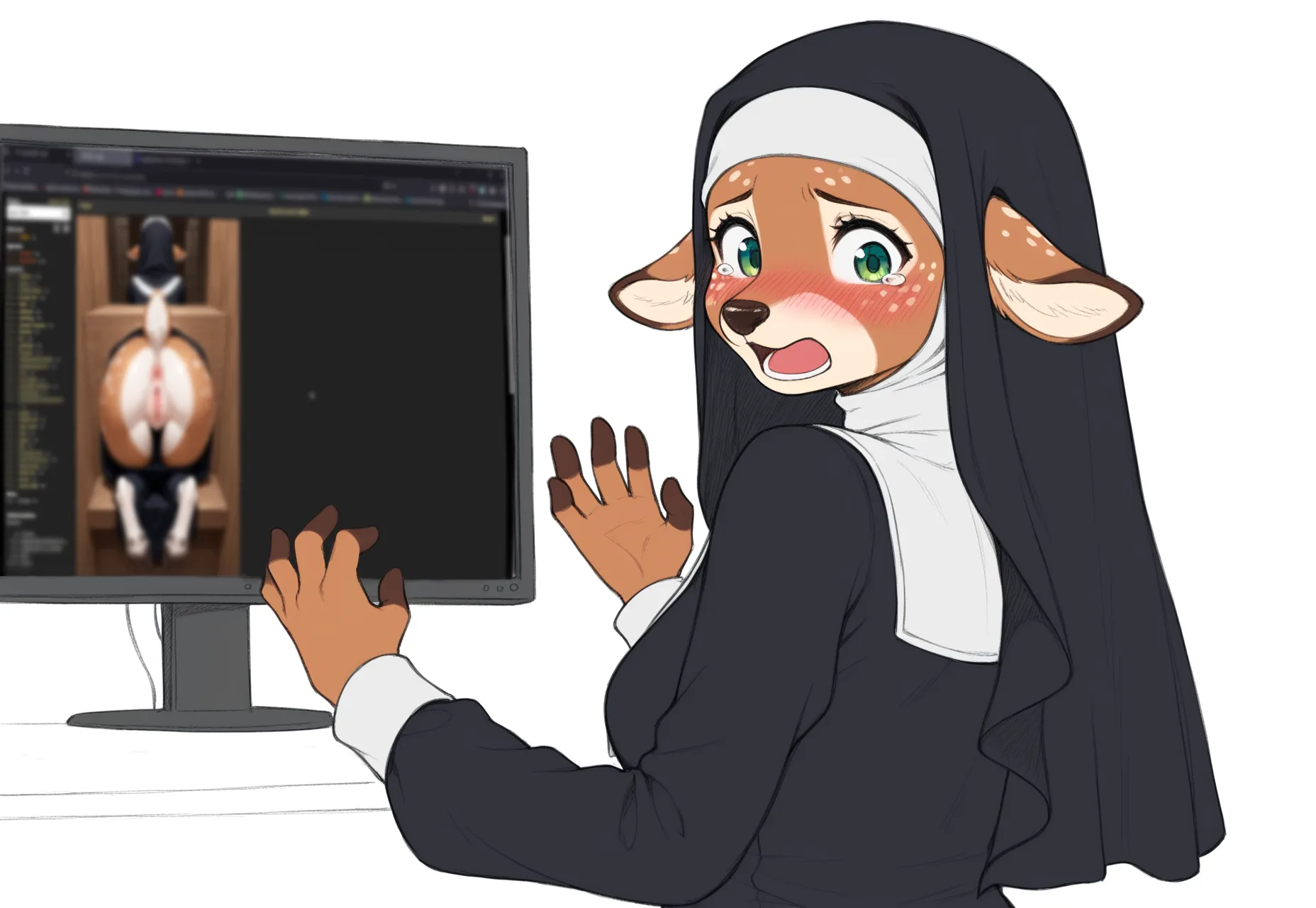 Busty White Deer Furry Babe Masturbating On Monitor | Yiff Party