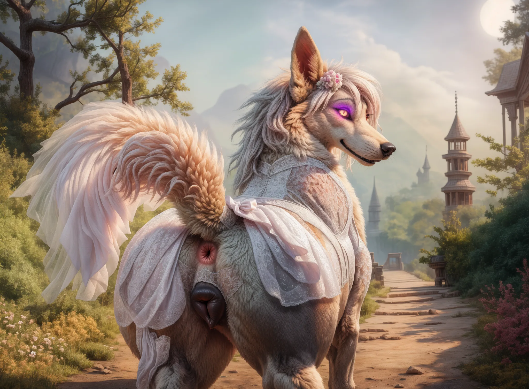 Cheeky Canid Cutie Presents Pink Pussy In White Lace Dress On Sunlit H | Yiff Party