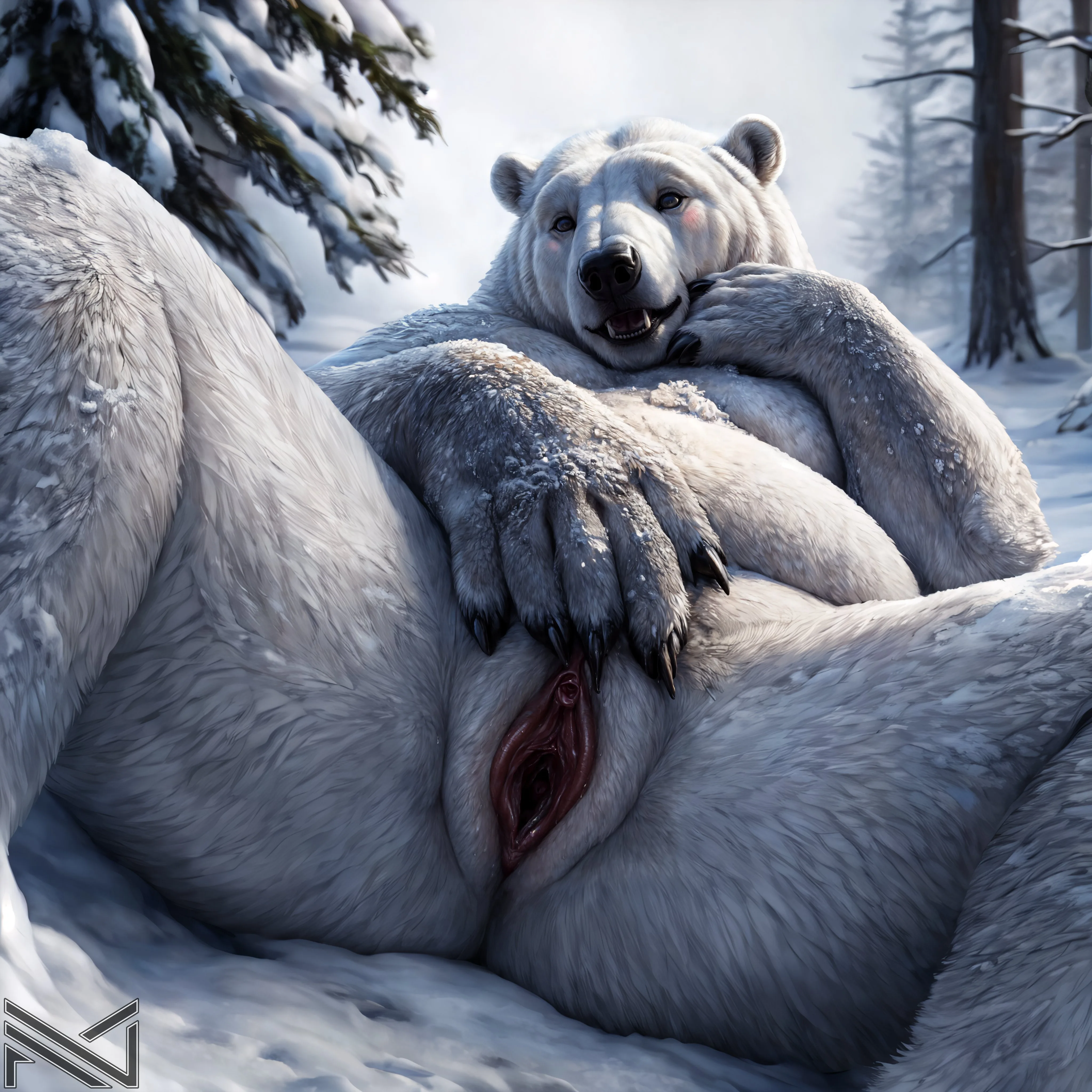 Chubby White Polar Bear Babe Masturbating In Snowy Forest | Yiff Party
