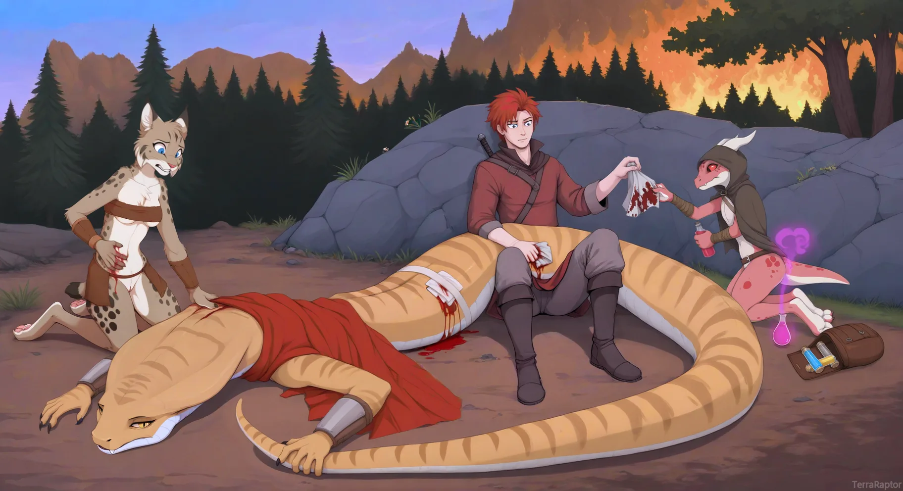 Cobra Naga And Lynx Anthro In Forest - Feline Pussy And Serpentine Gen | Yiff Party
